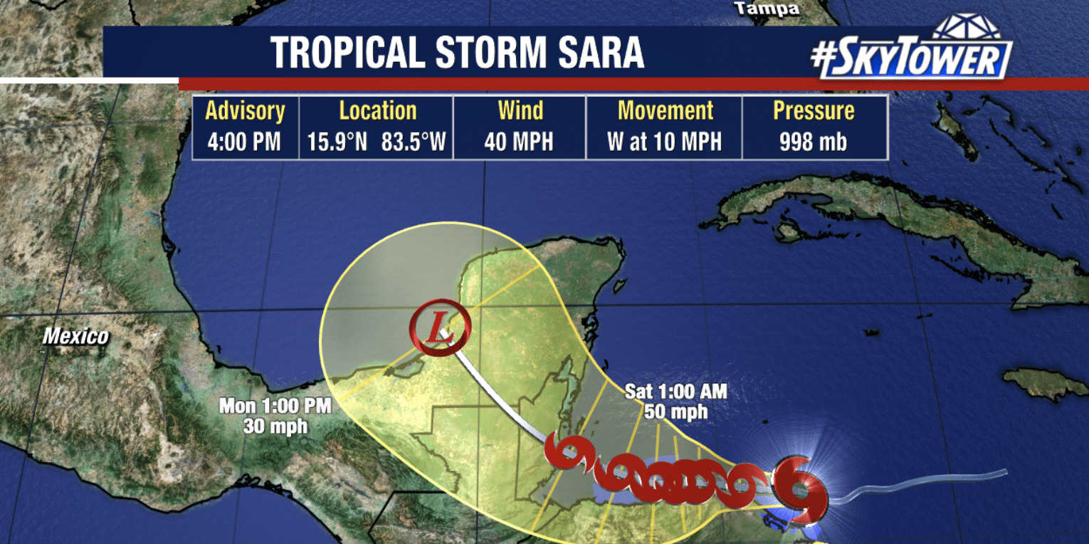 A Tempestade Tropical Sara formou-se na quinta-feira no Mar do Caribe e, segundo os meteorologistas, a expectativa era que provocasse inundações repentinas e deslizamentos de terra com risco de vida em diversas partes da América Central, incluindo Honduras.